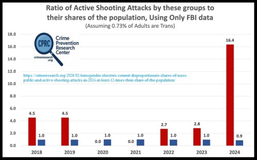 - https://crimeresearch.org/2026/02/transgender-shooters-commit-disproportionate-shares-of-mass-public-and-active-shooting-attacks-in-2024-at-least-12-times-their-share-of-the-population/