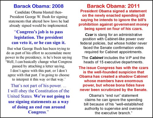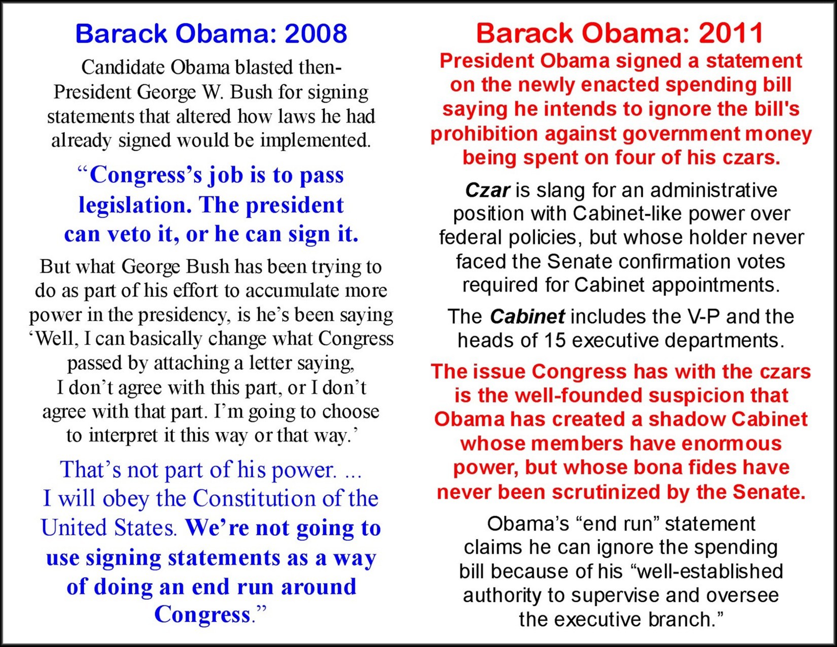 Comments Off on 2008 v 2011 – Obama on signing statements
