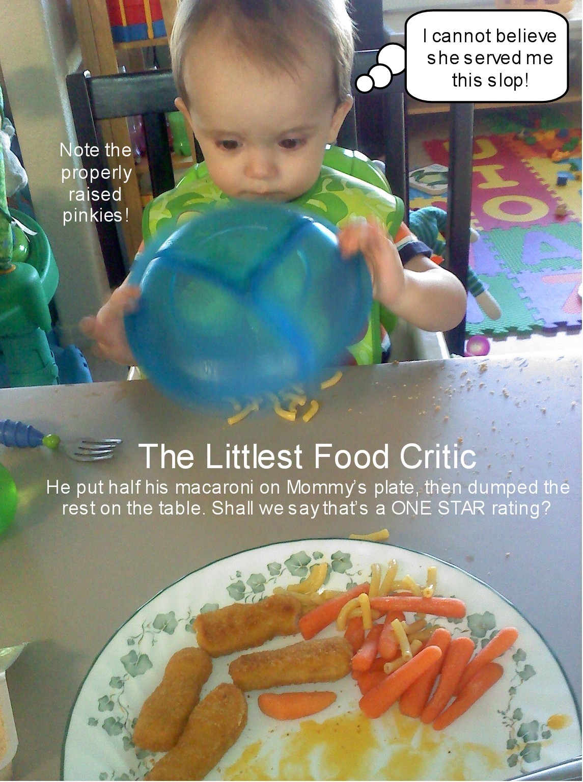 Maybe Baby Buzz can be a food critic when he grows up…if he learns to limit his bad reviews to writing!! lol