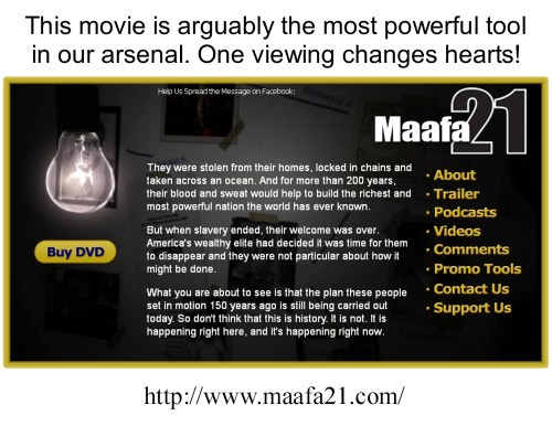 Maafa 21 tells the story of how Planned Parenthood and the Democratic Party planned the continued slavery and genocide of blacks via abortion and welfare. It’s a devastating tale that is waking up the black community and converting Mushy Middle, guilt-ridden liberal whites.