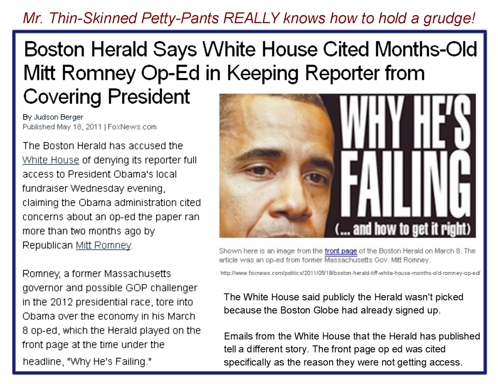 Mr. Thin-Skinned Petty-Pants really knows how to hold a grudge!