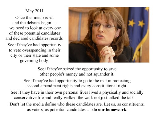 I’m doing my homework and I am getting excited, I tell you! Tuesday our first Richmond Organizing 4 Palin meeting is going to be here at my house. I wish I could afford to feed all those people who plan to work hard for Sarah a great big steak, but maybe we should save that for the last meeting, when we plan our trip in January 2013 to D.C.