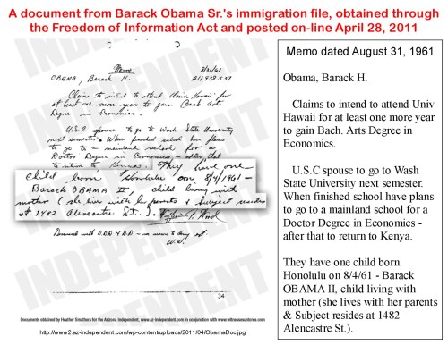 We’ve yet to see any valid documentary evidence that Barack Jr. was born in August 1961. Both his short and long form birth certificates show signs of digital tampering. And I think we can be certain that, if the INS files had contained an actual birth certificate for the baby, we’d have heard about it.