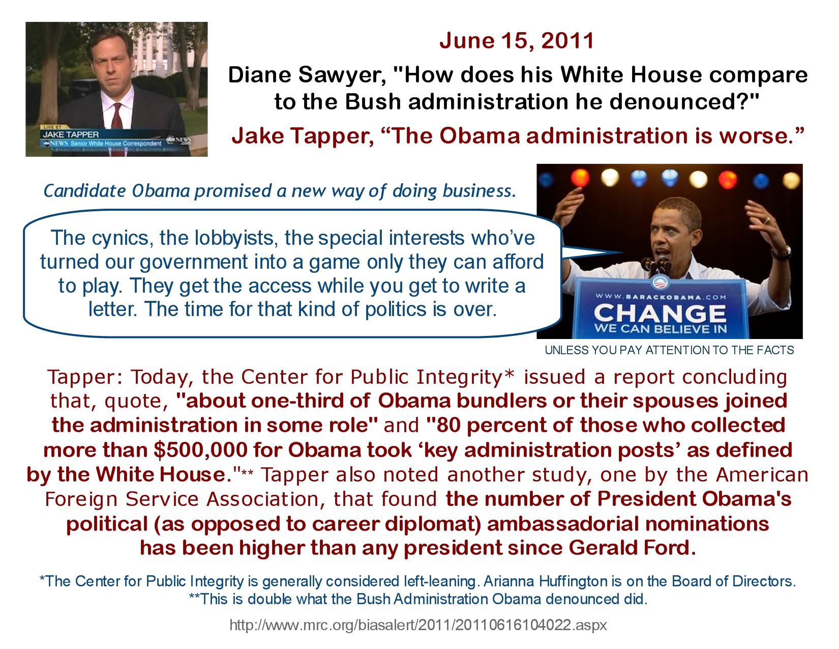 3. Oh, I agree, Tapper’s one of my favorites and probably didn’t get the This Week gig because he wasn’t a total media ‘ho for Obama.