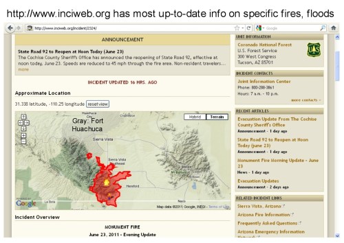 Today, crews continued to construct, reinforce, and secure the line between the Garden and Monument fires. At the upper end of Carr Canyon, “hot shot” hand crews, with close air support, are constructing hand line to keep the fire from spreading north into Ramsey Canyon. Night operations will focus on line improvement and mop up, while continuing to burn out areas west of the evacuated neighborhoods to strengthen control lines in the Carr Canyon and Garden Canyon road areas. Engines will continue to patrol and mop up hot spots.