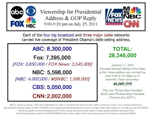 Still, combining Fox’s network and cable news numbers makes it a powerful force against *free* broadcasts, including their cable news stepchildren 🙂 I call it the lapdog effect, people are turning away from the Oblahma Slobber 😀