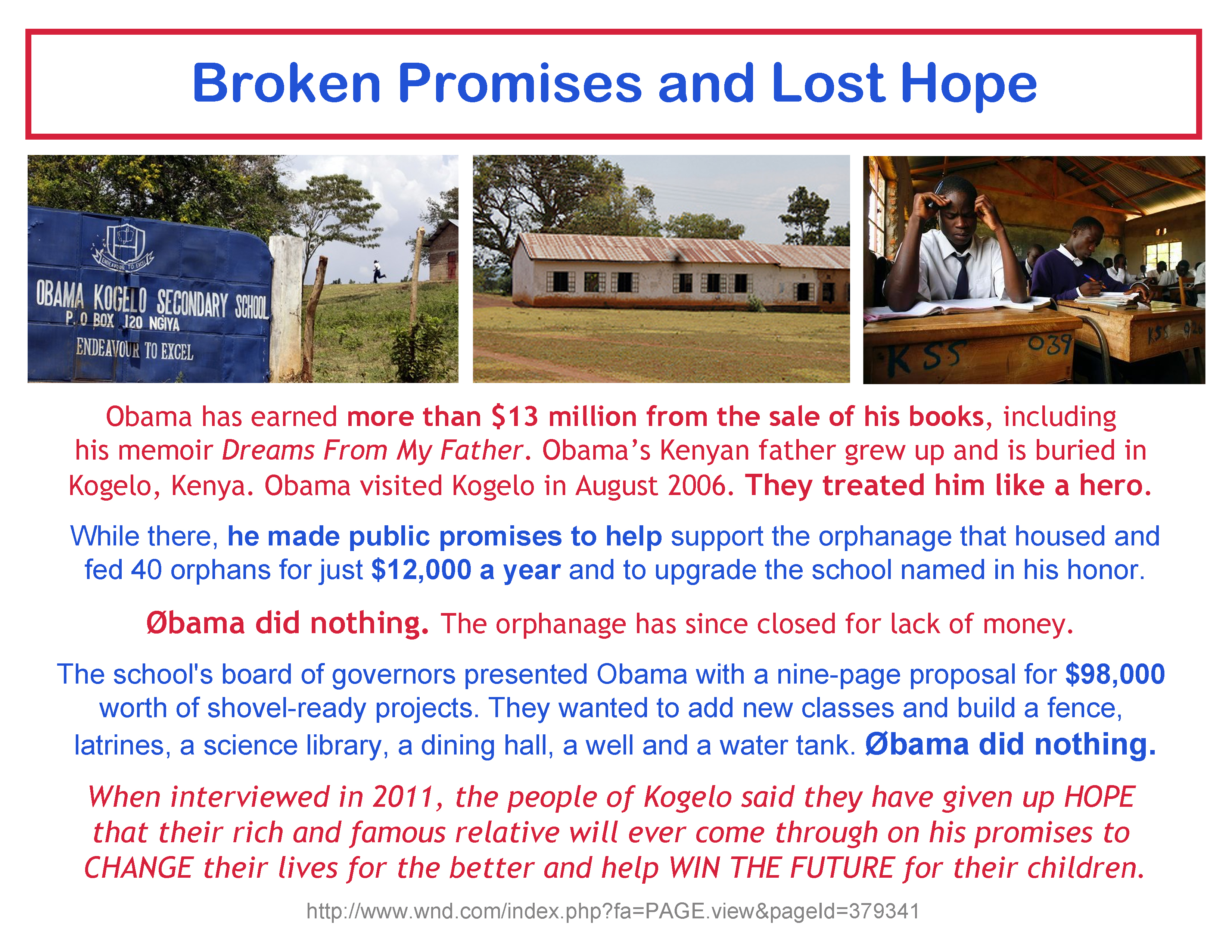 During his visit, Obama TWICE told the principal, teachers, assembled press and local politicians that he planned to help the school.
