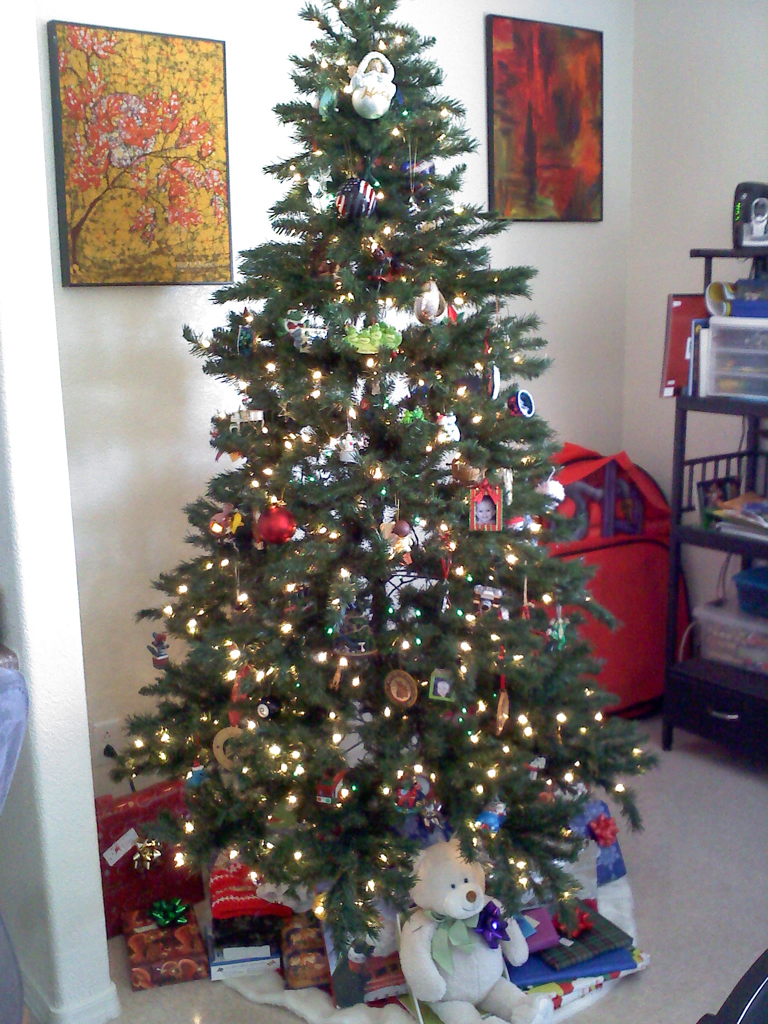I love our tree 🙂 so happy to share…the third art piece is hidden by the tree! too bad, b/c it looks so great hanging between those other two!