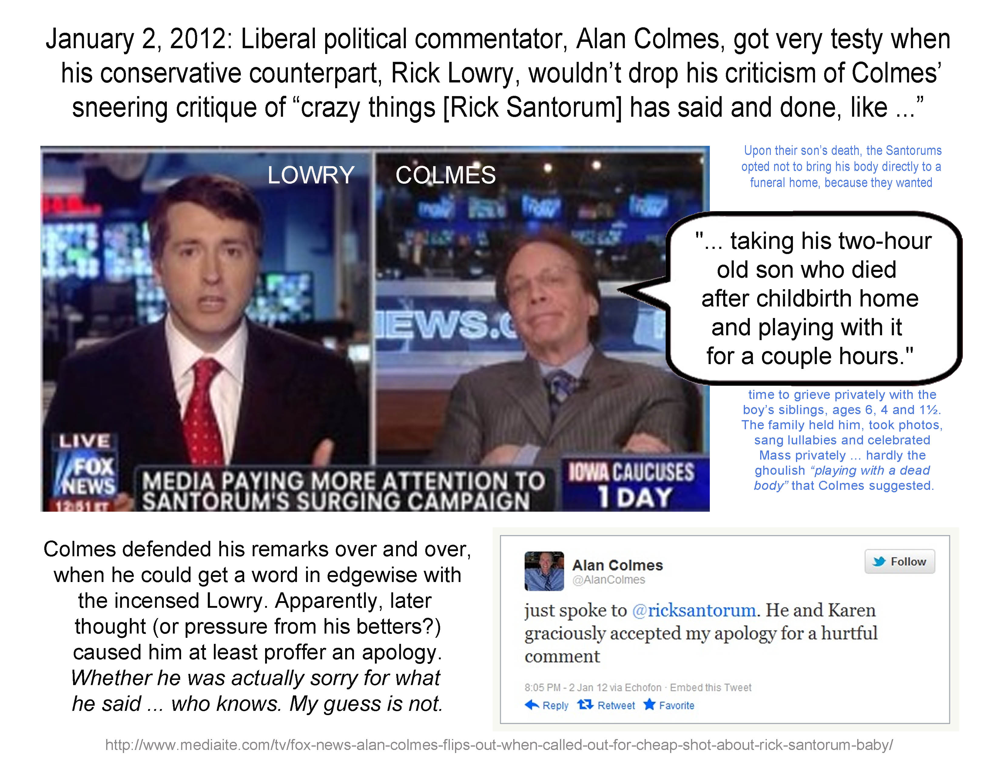 http://legalinsurrection.com/2012/01/alan-colmes-mocks-how-rick-santorum-mourned-dead-child/