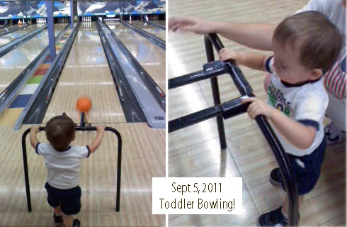 Just catching up on some older emails and found these gems. I never heard of toddler bowling, but what fun it must be to push the ball and make the pins go crashing down!