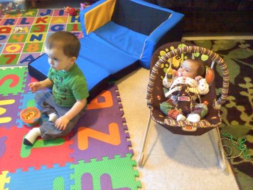 Got this in email from Mama Buzz: “Buzz has taken to climbing on the coffee table, usually when I’m busy with Bunny, so it’s difficult for me to do more than tell him to get down! I had a friend watching them for a while today. She told me he got up there and she knew we don’t like him to do it. So she told him to get down and he put his hands on his hips and stared at her with “the look of death” … which she says she’s seen me do the same look! lol! She had to lift him down. But she told him not to get back up AND HE DIDN’T!!!!!! I was so proud of him :).”