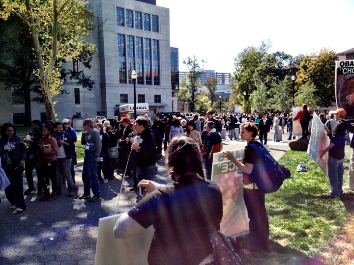 Of course we were greeted with the usual profanities, we were spit upon, we were yelled at, we were harassed by the Obama volunteer team, we were harassed by the police who demanded they had the right to create a special bubble to limit free speech and so much more. Those that did engage with us could never answer a single point we made and just changed the subject or started chanting “four more years”.