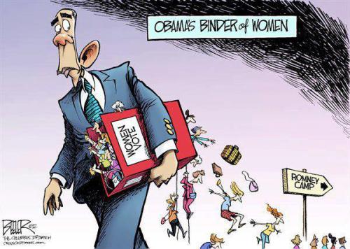 Yes, indeed. Romney wants to return us to the 1950s, when a woman’s place was in the binder, when every predatory male had his little black binder, and condescending misogynists would interview applicants for lieutenant governor of Massachusetts and smirk, “Why, Miss Jones, you’re beautiful without your binder . . . ” It was the age of patriarchal sitcoms when the little lady would greet her man at the front door with his pipe and binders, where girls were told they could aspire no further than to ace Home Ec and thereby persuade some eligible young man to put a ring file on their finger. We all remember the careless sexist assumptions of the so-called family shows of those days — Leave It to Binder, Ozzie and Binder, Binder Knows Best, My Three Binders, Gilligan’s Binder, The Binder Bunch — until eventually the mold was broken by The Mary Binder Moore Show in the early Seventies. By then, feminists across the land were burning their binders, and Erica Jong had popularized the “zipless file.” As Gloria Steinem famously said, a woman needs a binder like a fish needs a three-tab manila hanging folder.