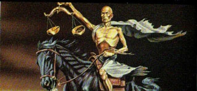 Scale: A tool that measures stuff by weight. A voice tells the Black Horseman, “A ration of wheat costs a day’s pay, and three rations of barley cost a day’s pay.” In other words, during famine, food is sold at such an exorbitant price that one wage earner could barely keep himself alive, much less feed dependents.