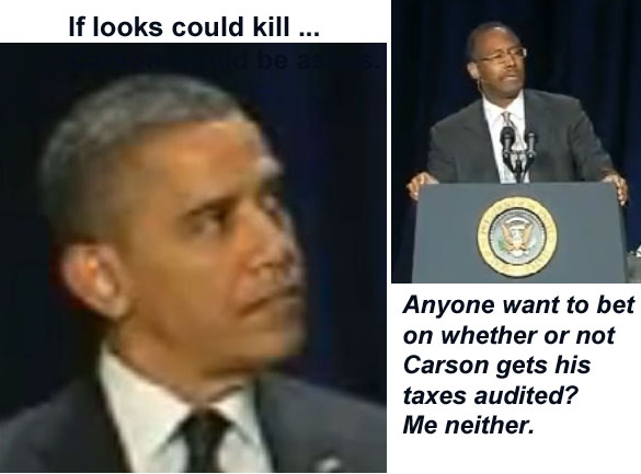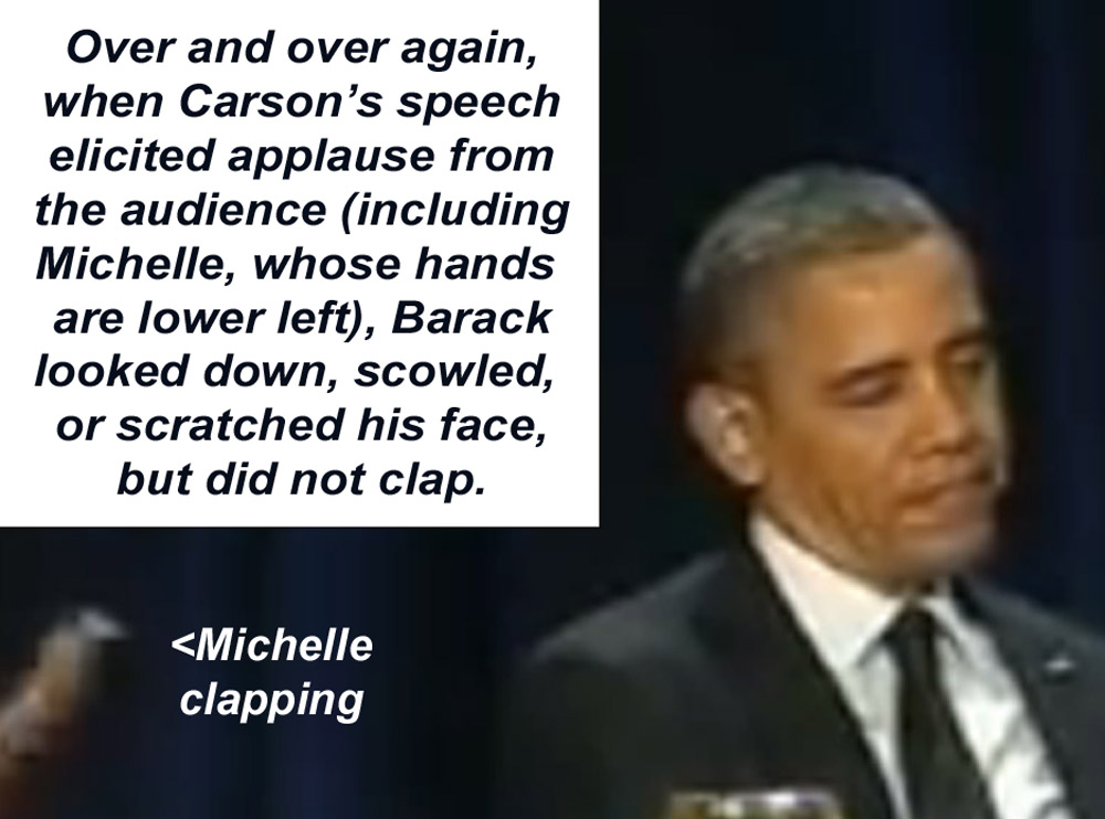 I grabbed some screenshots of Obama’s reactions to what Dr. Carson was saying. I think he showed us exactly how petty and mean-spirited he really is.