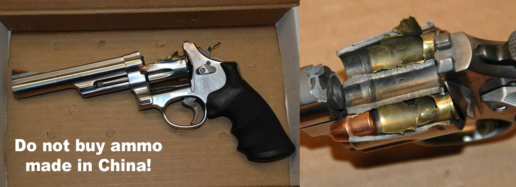 A guy came into the police department the other day to ask a favor. He had a S&W 629 (.44 Mag) that he wanted to dispose of after a mishap at the range. He said there was a loud bang when he tested his new ammo (Chinese-made), and the gun smacked him in the forehead, leaving a nice gash. Bet he never uses Chinese-made ammo again!