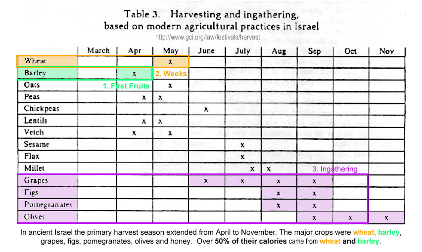 Harvest Seasons of Ancient Israel @ http://www.gci.org/law/festivals/harvest