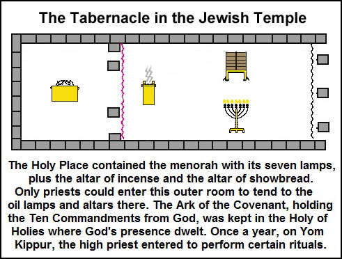The Tabernacle in the Jewish Temple had two rooms – the most sacred inner room where God’s presence dwelt and the sacred outer room where priests kept the seven oil lamps on the menorah lit continually, burned incense twice a day, and changed out the twelves loaves of showbread once a week.