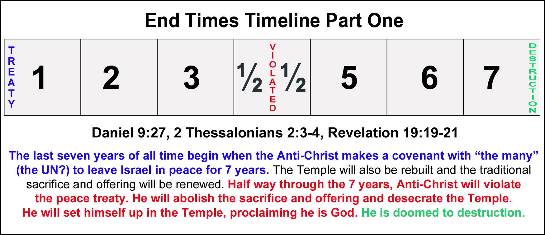 - The last seven years will begin with a treaty between “the desolator” (the Anti-Christ) and “the many” (maybe the United Nations) to leave Israel in peace for seven years.