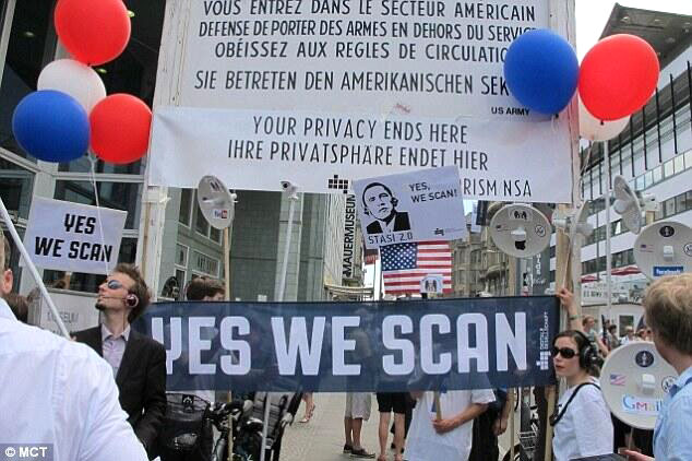 - http://www.theatlantic.com/international/archive/2013/06/yes-we-scan-germans-protest-at-checkpoint-charlie-as-obama-arrives-in-berlin/277008/
