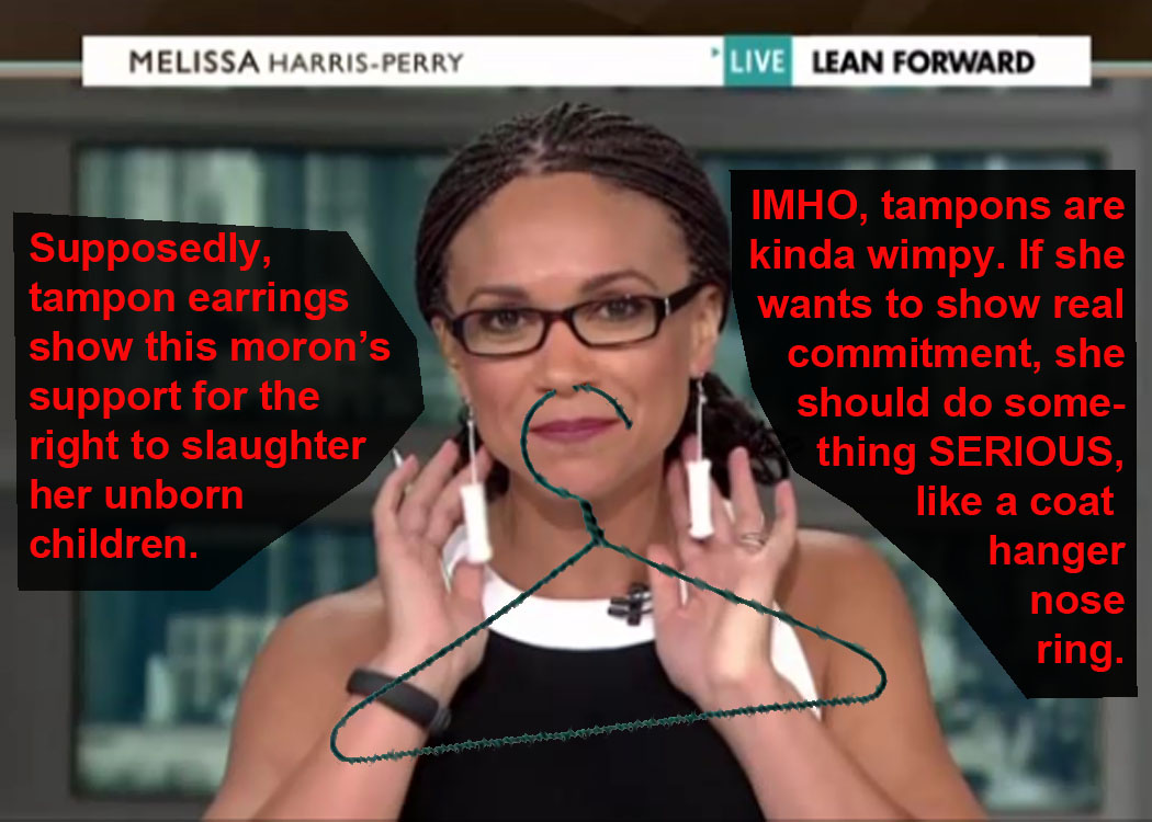 MELISSA HAIRY-SCARY WILL DO ANYTHING TO GET PEOPLE TALKING ABOUT THE TRASH NETWORK SHE WORKS AT…INCLUDING WEARING TAMPON EARRINGS TO BITCH ABOUT THE ABORTION LAWS IN TEXAS