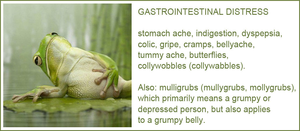 I also learned two new ways to complain when my tummy hurts – collywobbles and mulligrubs. And for bonus, I found a wonderful frog picture for my collection to illustrate it. π