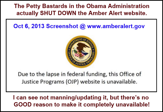 http://twitchy.com/2013/10/06/really-amber-alert-website-goes-dark-under-government-shutdown/