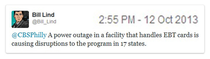 - http://twitchy.com/2013/10/12/riot-time-food-stamp-users-in-near-panic-over-ebt-card-failures/