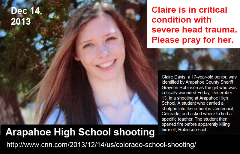At 12:33 p.m. on Friday, December 13, 2013, an angry high school senior parked his car in the student lot at Arapahoe High School in suburban Denver, and walked into the school wearing a bandolier containing shotgun shells and carrying a pump-action shotgun, a machete and a backpack holding three Molotov cocktails.