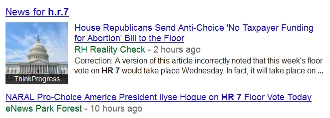 I wrote to my congressman about H.R.7 and got this back: “I firmly believe that Americans’ hard-earned tax dollars should not be used to perform abortions. It is too much to ask of Americans who fundamentally disagree with the procedure.” Yay!