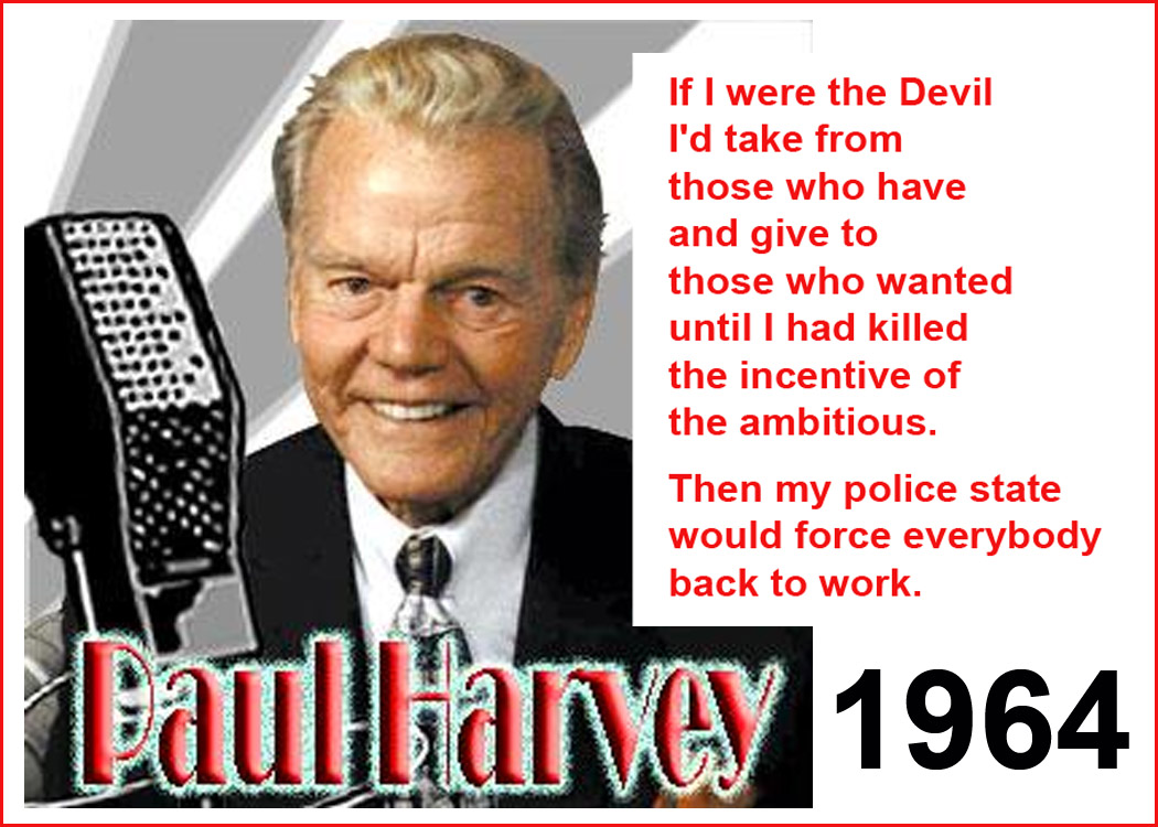 If I were the Devil I’d take from those who have and give to those who wanted until I had killed the incentive of the ambitious. Then my police state would force everybody back to work.