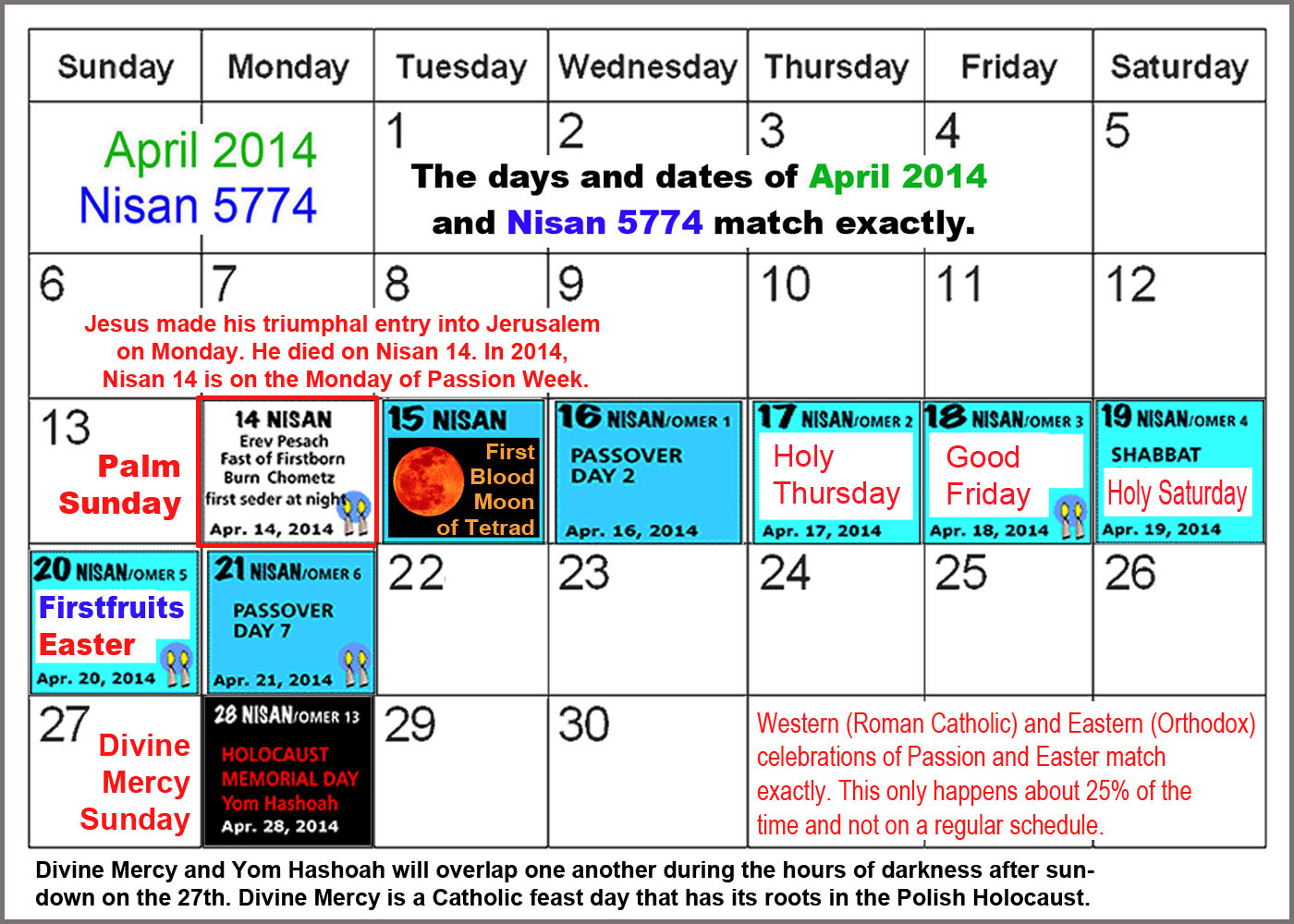 I looked at April 2014 in the Torah Calendar. I think … is this right? http://www.torahcalendar.com/Calendar.asp?YM=Y2014M1
