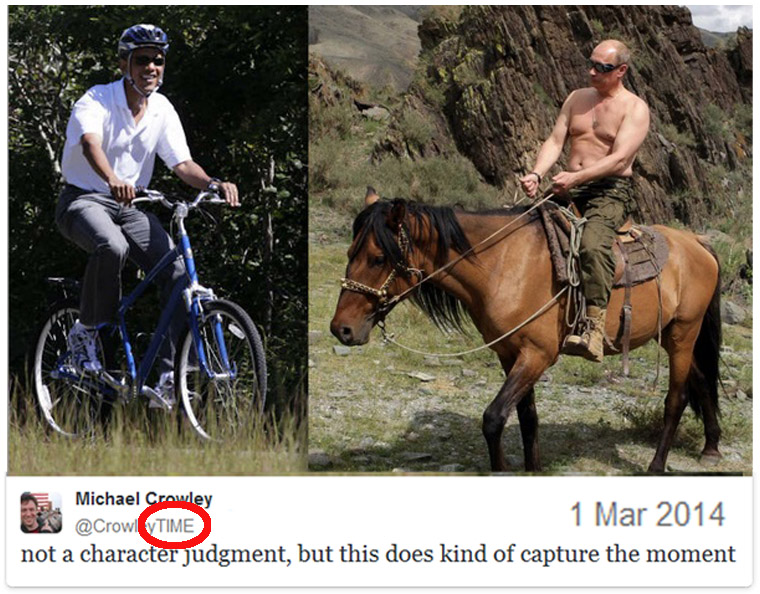 - TIME journo puts picture of Putin next to Obama, and libs respond with calling him right-wing? Sorry libs, but TIME is your rag, not ours.