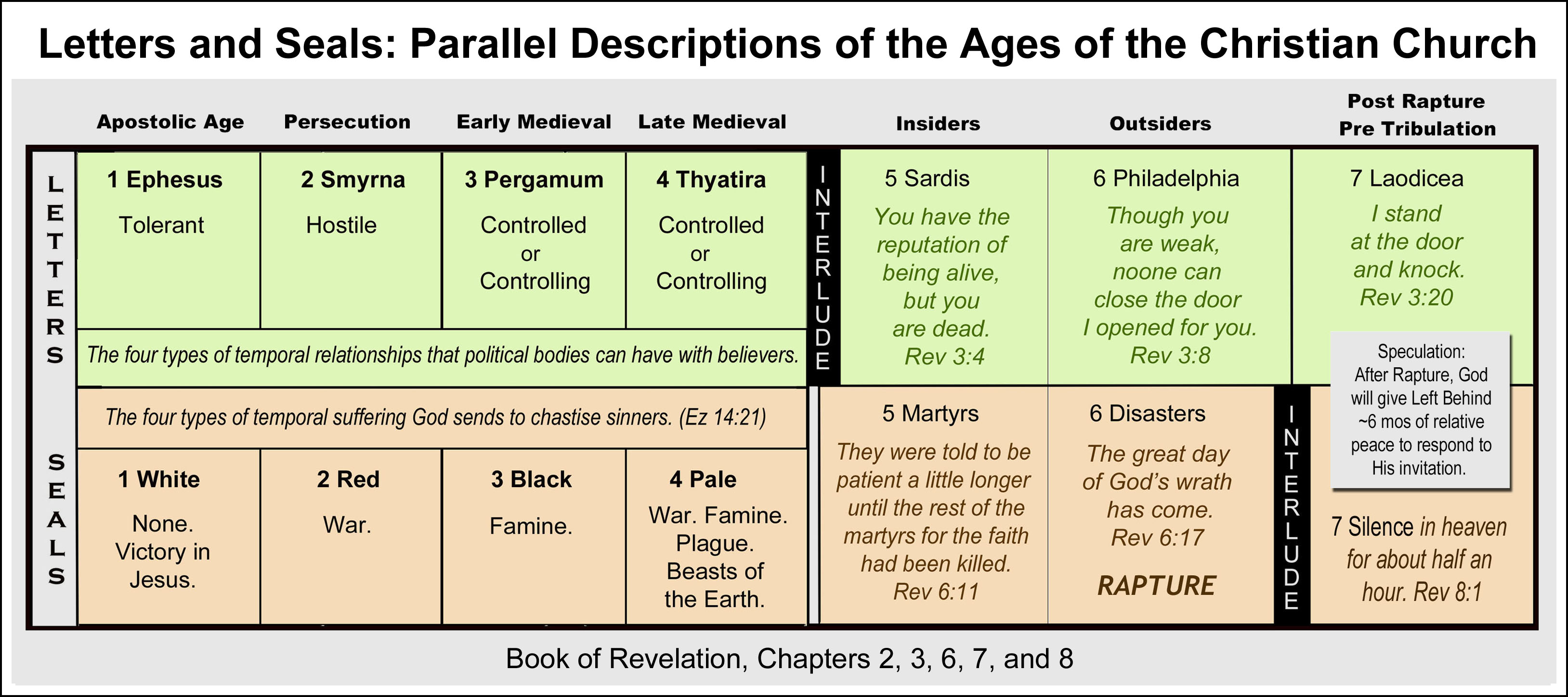I have found a passage in Genesis that may add another layer of respectability to my oft-repeated theory that the seven Letters and seven Seals in John’s Revelation vision are parallel descriptions of salvation history from Jesus to the end of the Age of the Gentiles and the seven Trumpets and seven Bowls are parallel descriptions of the last seven years (aka, the last Week of the Jews).