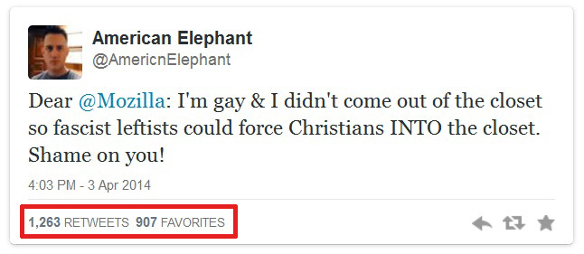 http://twitchy.com/2014/04/04/brilliant-statement-gay-conservatives-tweet-to-mozilla-earns-a-thousand-thumbs-up/