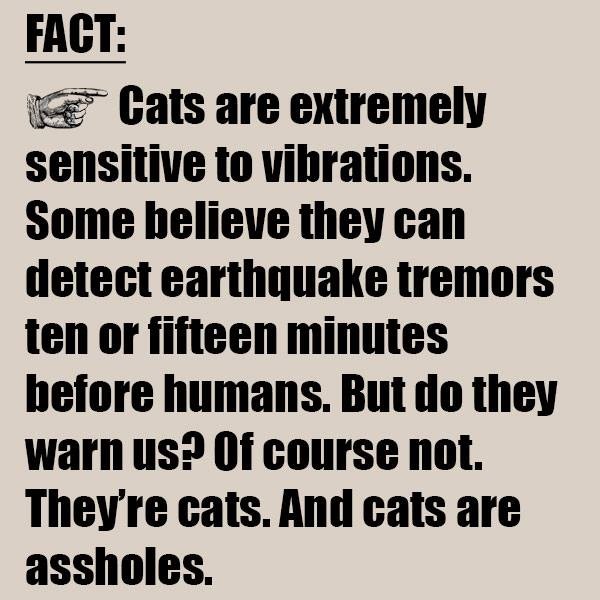 Love it. I have that “cats are assholes” graphic stashed, but I’ve been too afraid to use it, ’cause I didn’t want Bob to peck my eyes out with her beak. My wimpy dog certainly wouldn’t defend me.