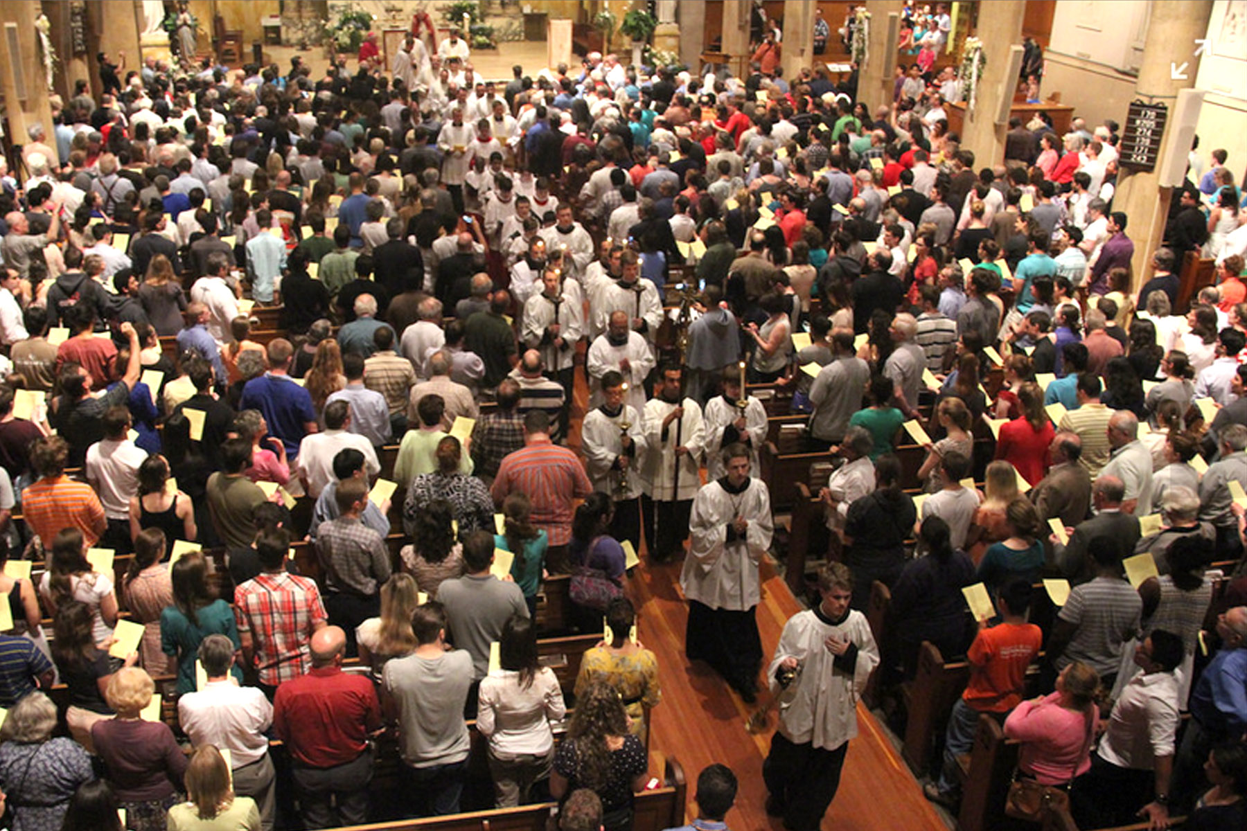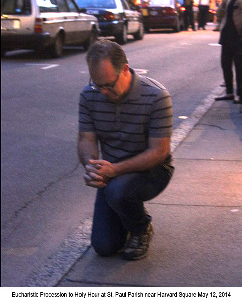 When a group at Harvard announced they planned to hold a Satanic Black Mass ritual on Monday, May 12, 2014, Catholics responded by scheduling a Eucharistic Procession and Holy Hour for 8-9 PM at St. Paul’s Church to make reparation and to pray. These are my favorite photos from the event.