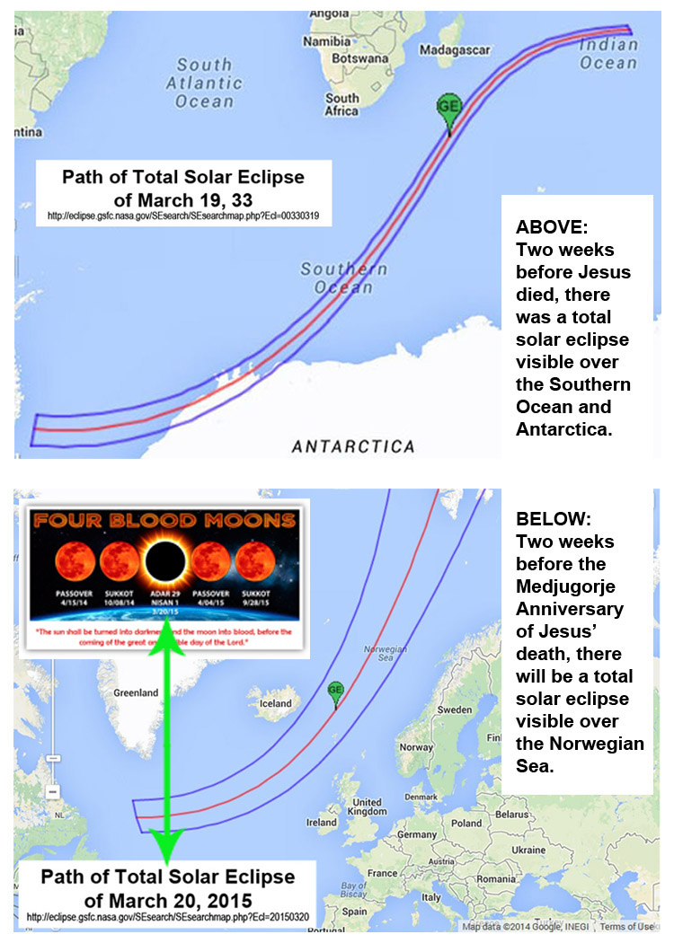 I explored the possibility that the upcoming Solar Eclipse and Third Blood Moon might also be Medjugorje matchers for the last weeks of Jesus life and again found remarkable similarities between the calendar dates and sky signs.