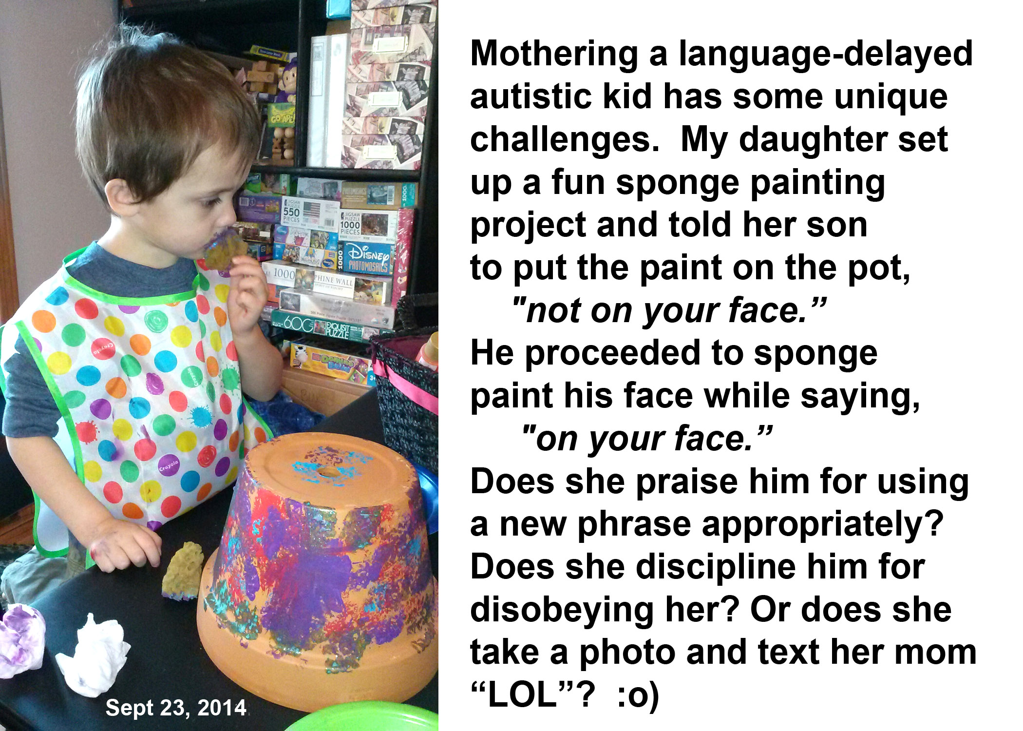 I’ve long said, the problem with kids is, if you say, “Don’t put your fingers in the fan,” somehow the idea sticks real well, except for the “don’t” part.