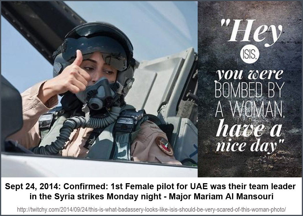 yes, I have heard the same… and yes I think it is awesome that a woman is part of the UAE air force. I hope her bombs dropped on a whole group of them.