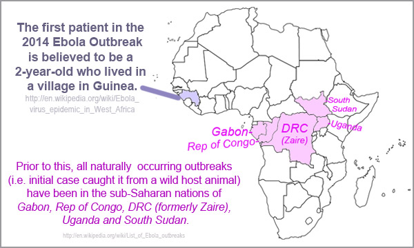 - Other outbreaks have all been in CENTRAL AFRICA (Gabon, Republic of the Congo, DRC/Zaire, South Sudan, Uganda).
