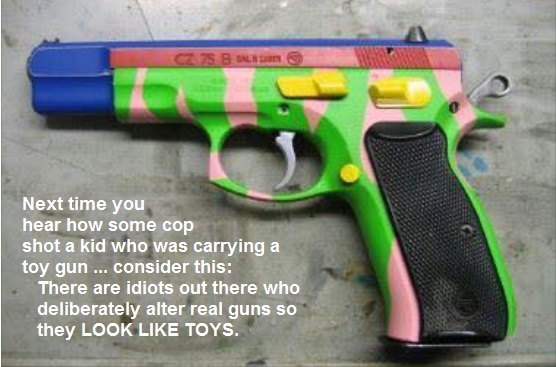 Just a guess, but possibly illustrative of the fact that no Progressive Leader Talking Head has declared that Real Guns Disguised As Toys are an evil Republican plot.