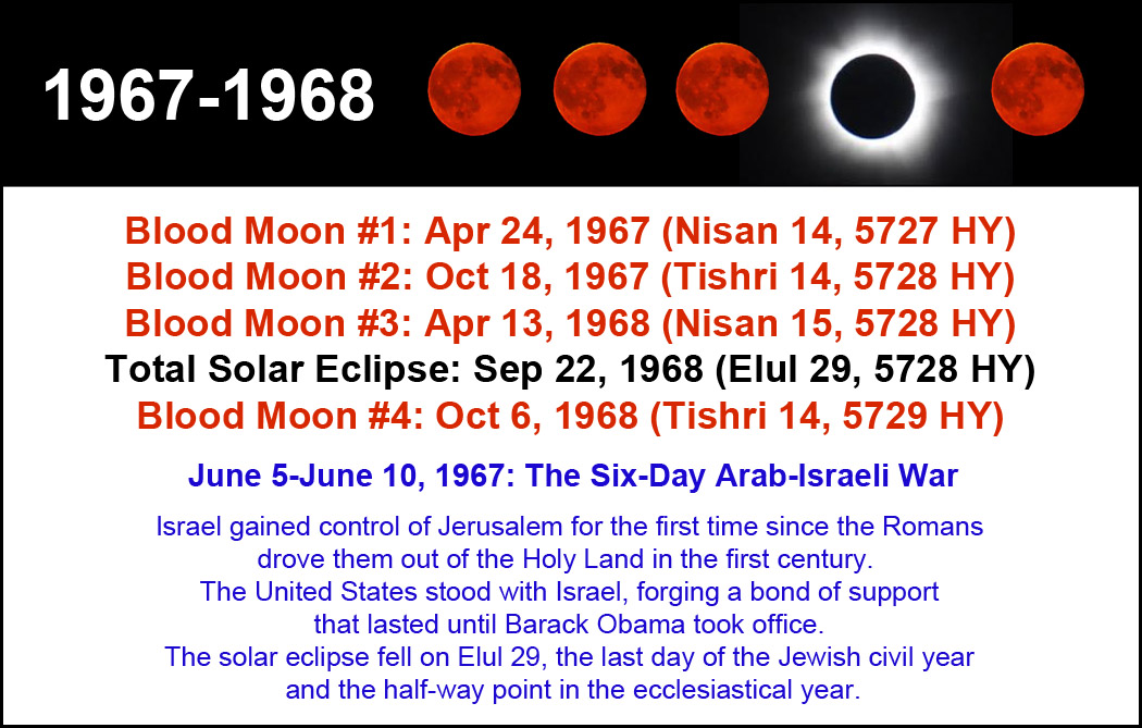 • Of these six, three were in the first millennium, so while they might be interesting for some other reason, I decided I could eliminate them from End Times consideration.  That left me with only the following three tetrads.