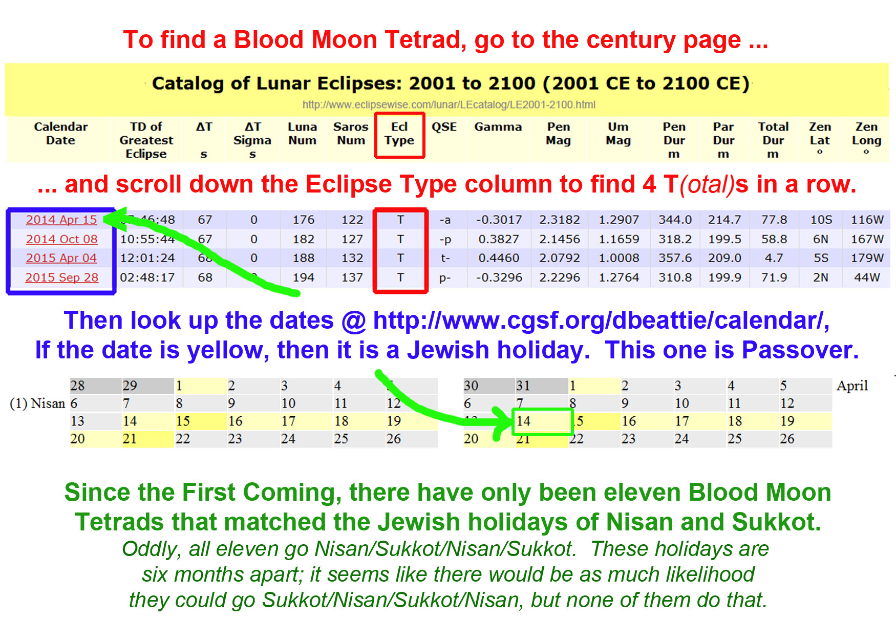 When Christians speculate about the significance of the current Blood Moon Tetrad, they’re not talking about ANY four total lunar eclipses in a row. They’re talking about only those that coincide with the Jewish holidays of Passover and Sukkot.