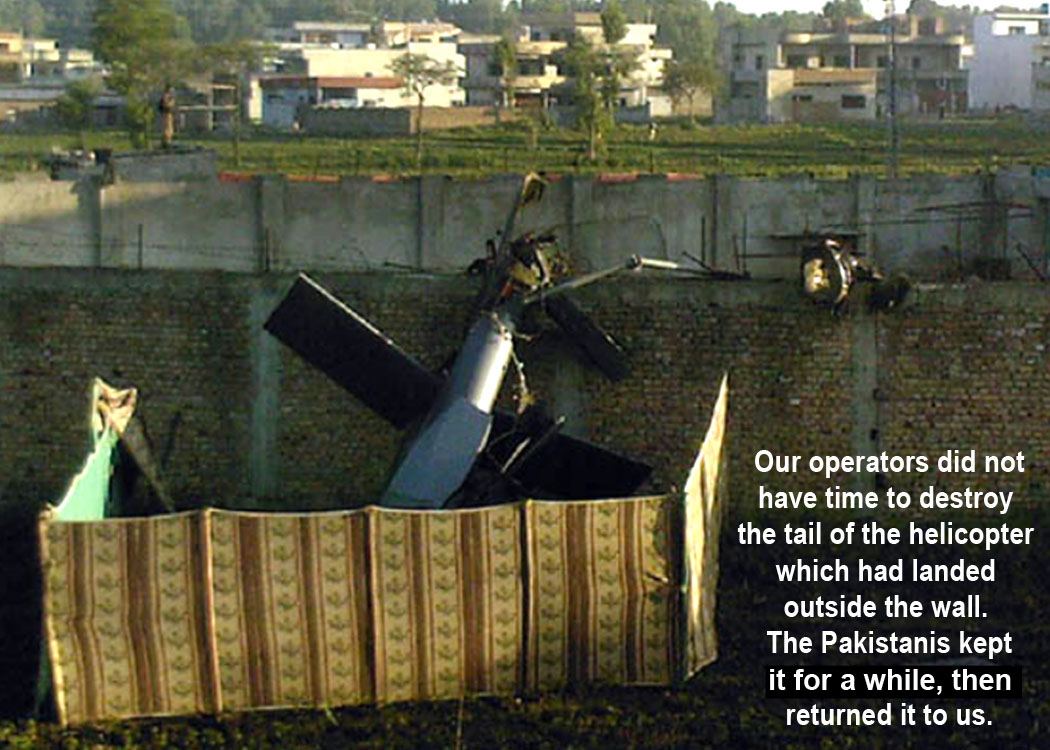 They weren’t able to destroy the tail assembly, probably because it had landed on the other side of the wall. The Pakistanis kept it for a while, then returned it to the Pentagon.