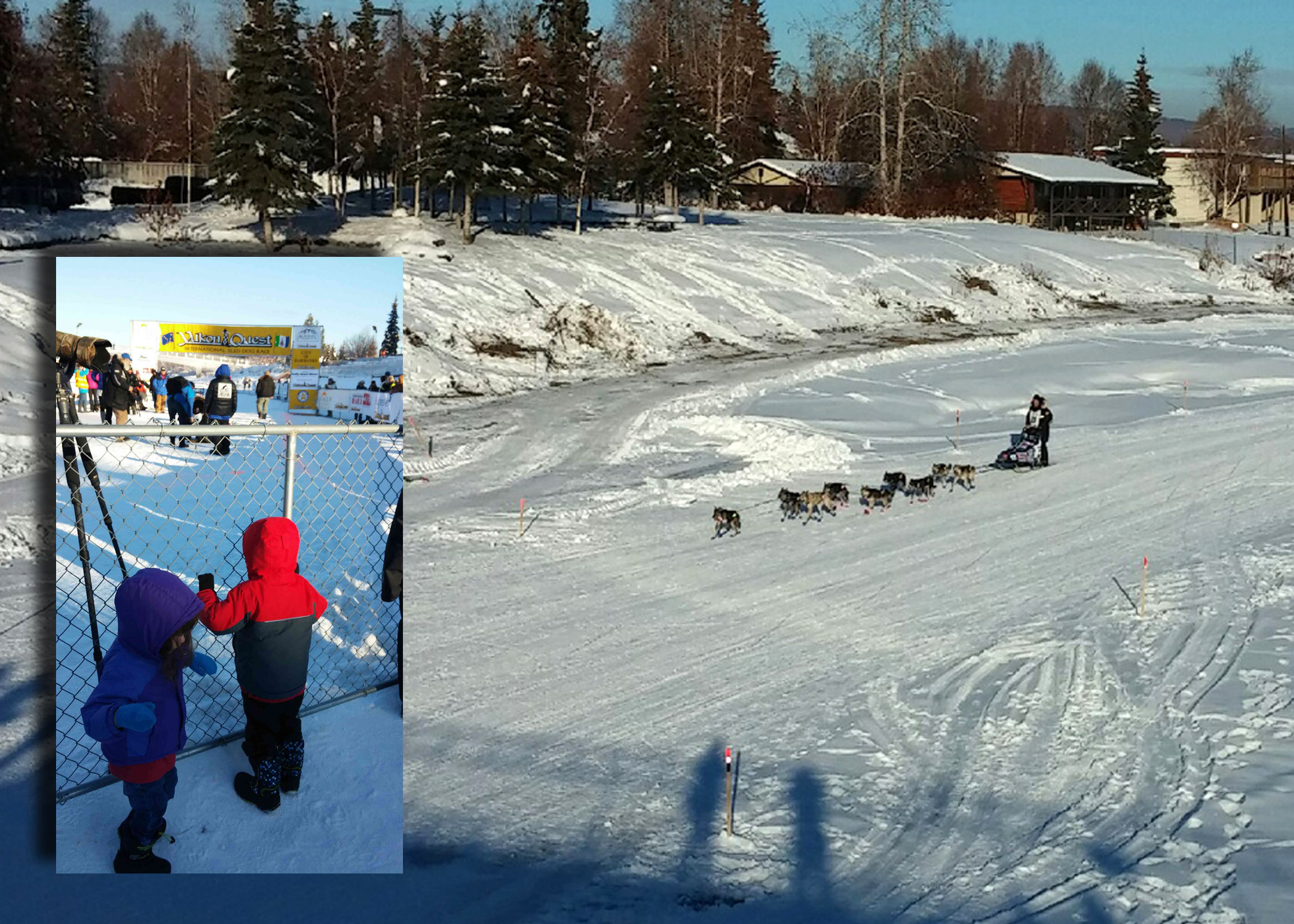 Buzz and Bunny got to see one of the dog teams cross the Yukon Quest finish line!