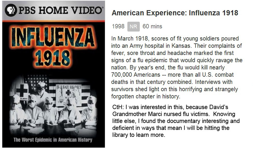 Interesting. Also that the men didn’t get it. They said in the documentary that this flu was very unusual in being most lethal to strong men in their prime.