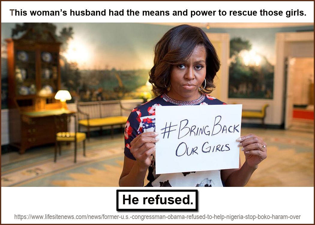 So Obama refused to help Nigeria fight Boko Haram and rescue 300 black girls from slavery, because Nigeria’s laws aren’t friendly to homosexuals?