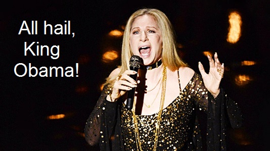 In Sept 2014, Streisand likened Obama to “gods” and “kings.” A couple of weeks ago, she gave him credit for creating lots and lots of jobs, while blasting Republicans’ allegedly relentless opposition to his wonderful efforts to save American workers.