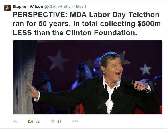 He just works at the foundation bearing his name that he founded… making $100 million per speech. No biggie.